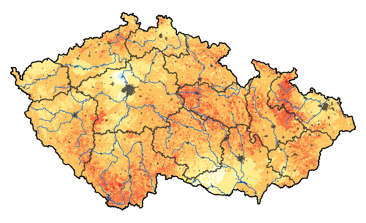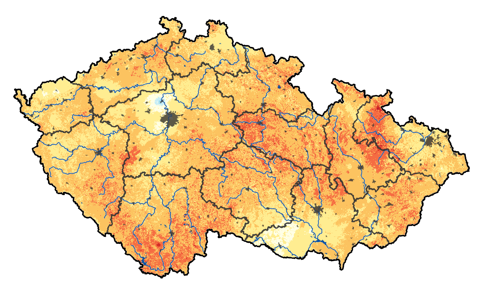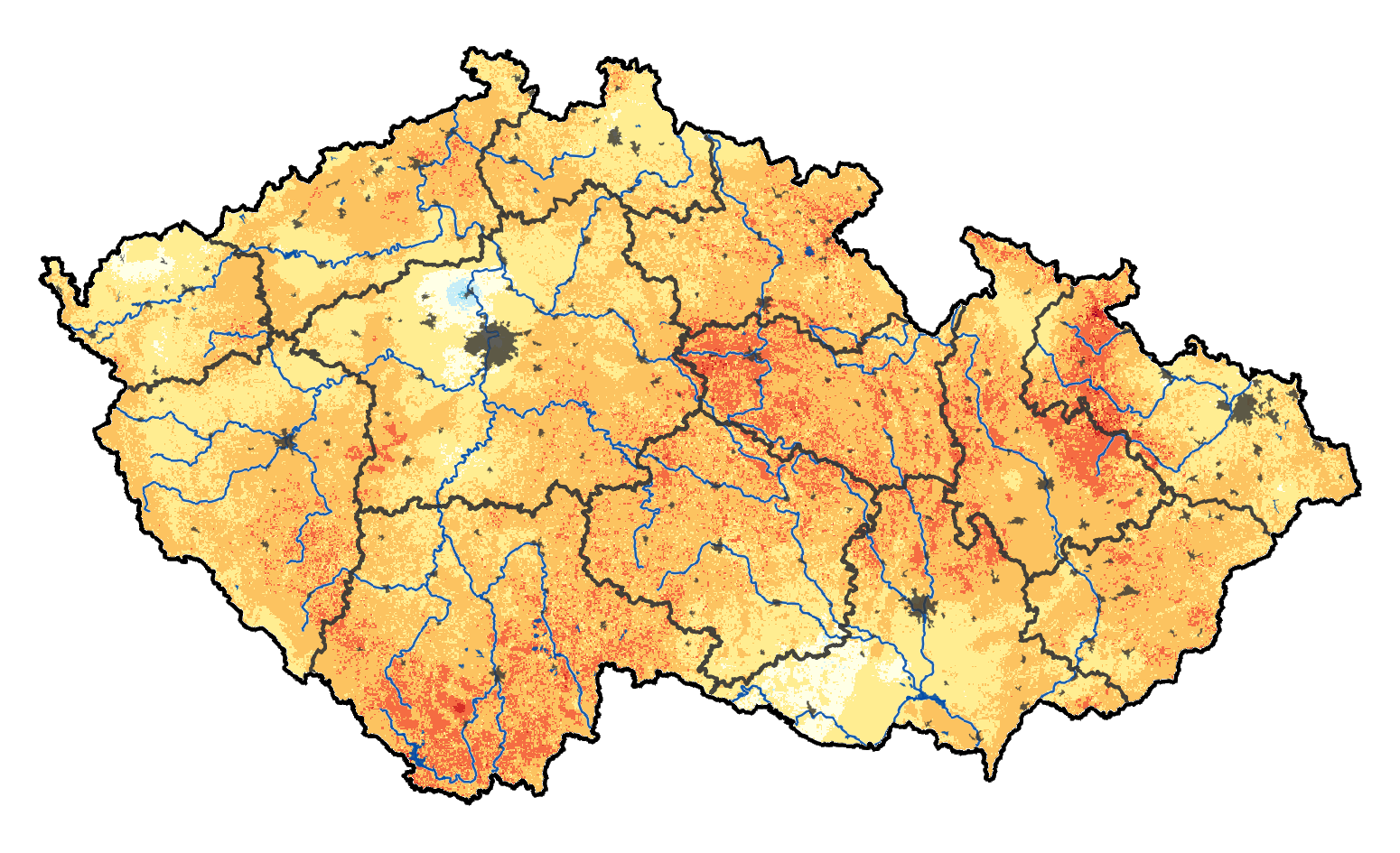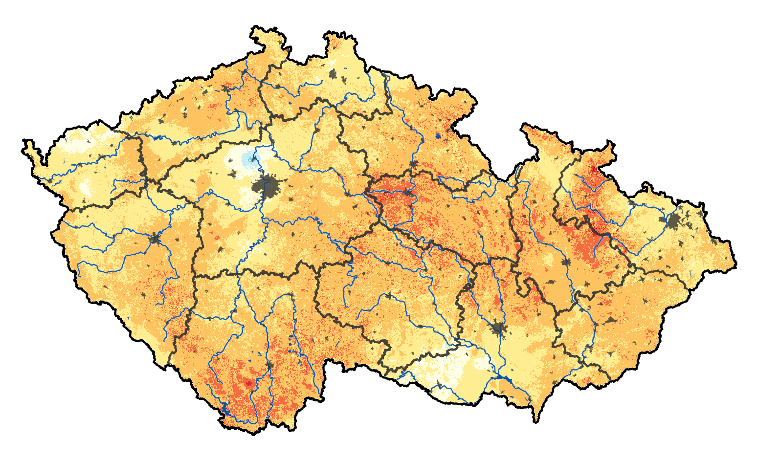 Upozornění: Denně jsou aktualizované mapy v části Intenzita sucha, Deficit vláhy, Nasycení půdy, Zásoba vody v půdě, Kumulovaný stres a Předpověď. Ostatní mapy zachycují obvykle situaci v neděli ráno a k tomuto času se vážou i všechny doprovodné texty.