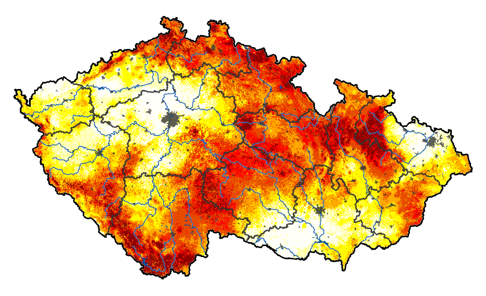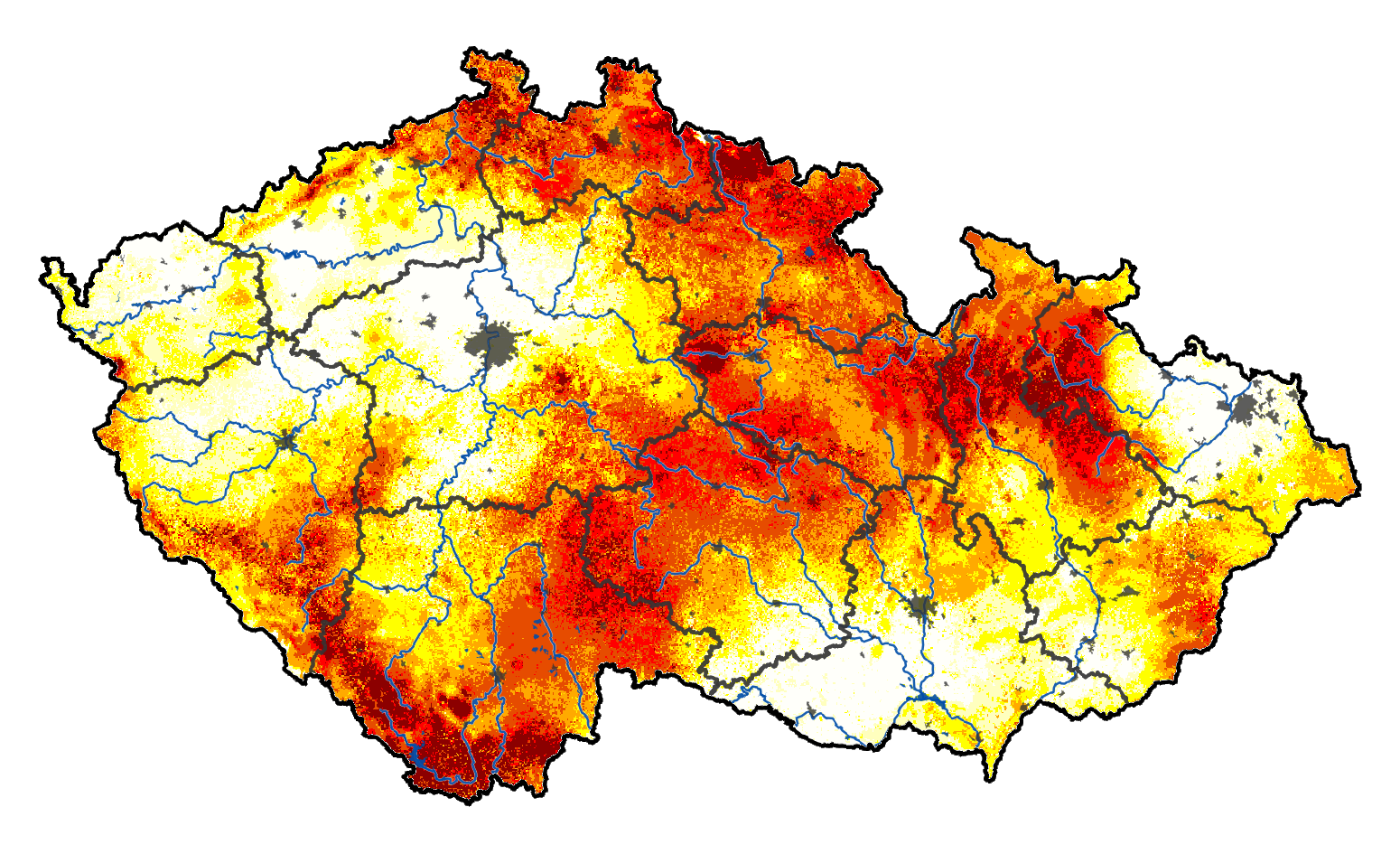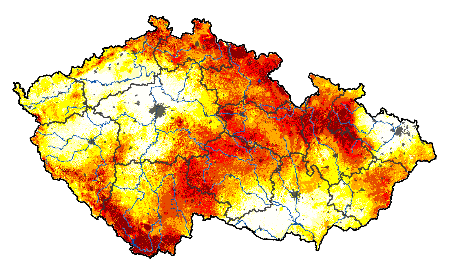 Upozornění: Denně jsou aktualizované mapy v části Intenzita sucha, Deficit vláhy, Nasycení půdy, Zásoba vody v půdě, Kumulovaný stres a Předpověď. Ostatní mapy zachycují obvykle situaci v neděli ráno a k tomuto času se vážou i všechny doprovodné texty.