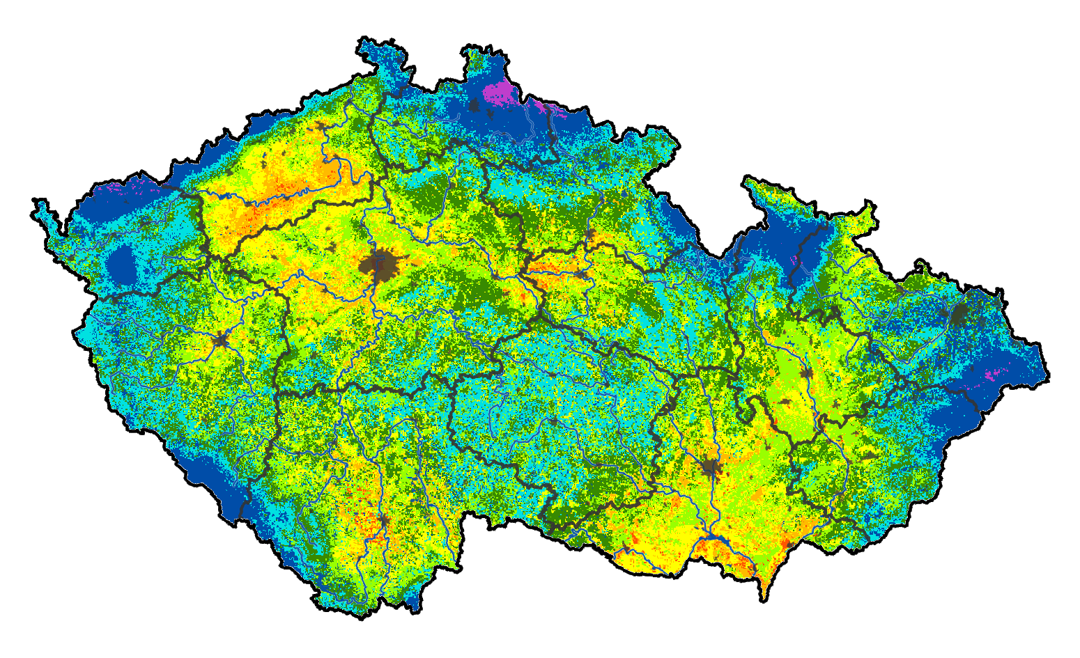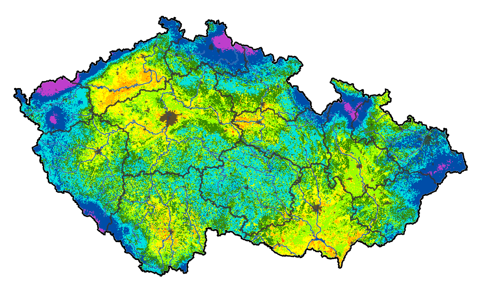 Upozornění: Denně jsou aktualizované mapy v části Intenzita sucha, Deficit vláhy, Nasycení půdy, Zásoba vody v půdě, Kumulovaný stres a Předpověď. Ostatní mapy zachycují obvykle situaci v neděli ráno a k tomuto času se vážou i všechny doprovodné texty.