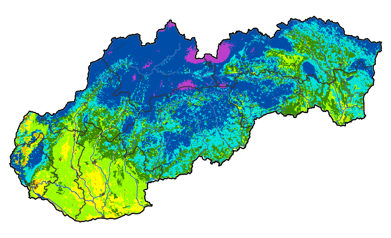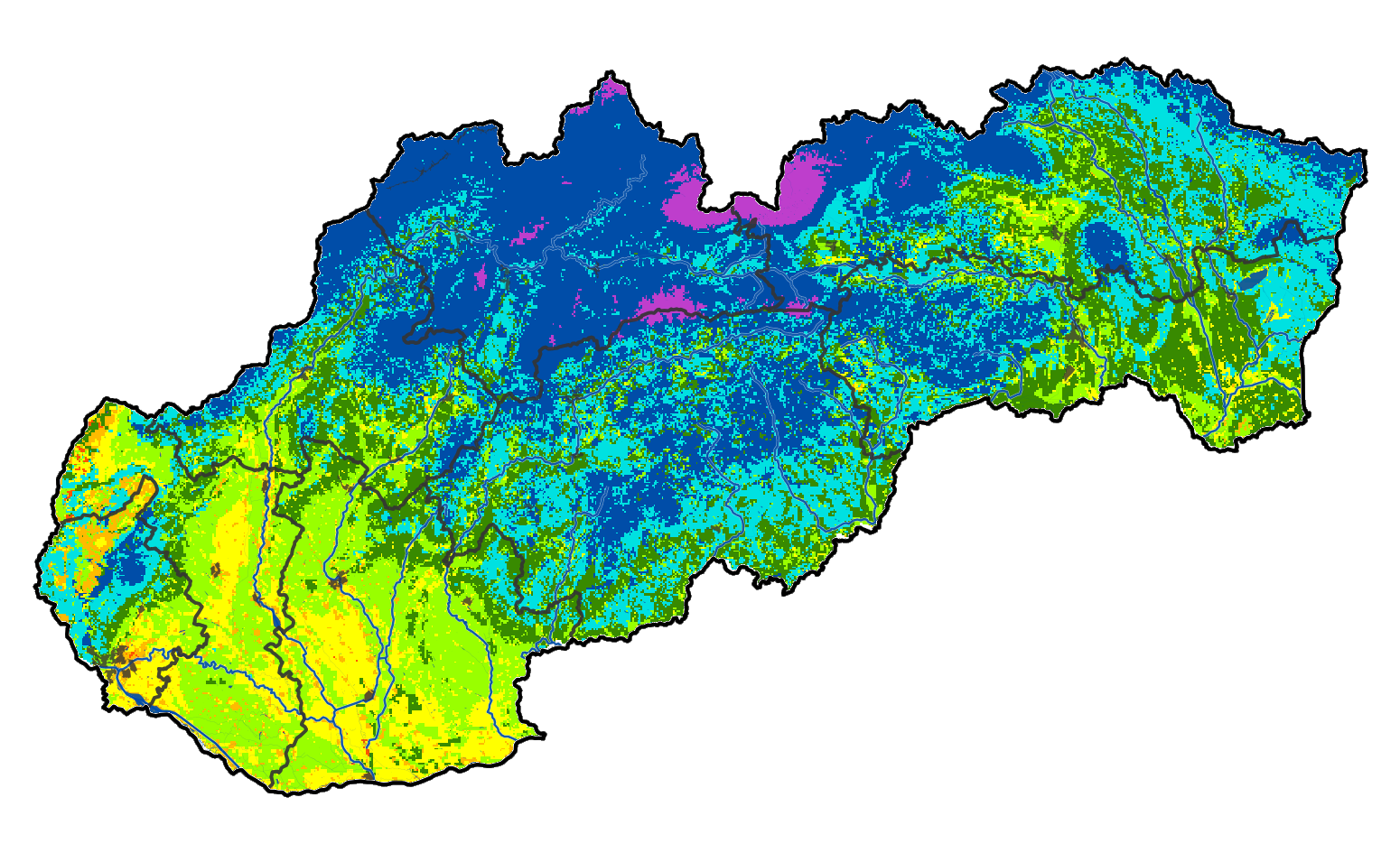 Zásoba vody v pôde a relatívne nasýtenie je v povrchovej vrstve (0-40 cm) najnižšie v intervale 10-30 % na Záhorí a Zemplíne. Na Podunajskej nížine je najnižšie nasýtenie 20-30 %. V hlbšej vrstve (40-100 cm) je najnižšie nasýtenie 20-30 % len lokálne na juhozápade Slovenska, a to v okolí Bratislavy a Pezinka a na Záhorí. V celom pôdnom profile (0-100 cm) je najnižšie nasýtenie v intervale 20-30 %, lokálne na Podunajskej nížine a Záhorí a na Zemplíne. Nasýtenie pod 50 % je okrem juhozápadného Slovenska, aj na Šariši, Zemplíne a Above.
